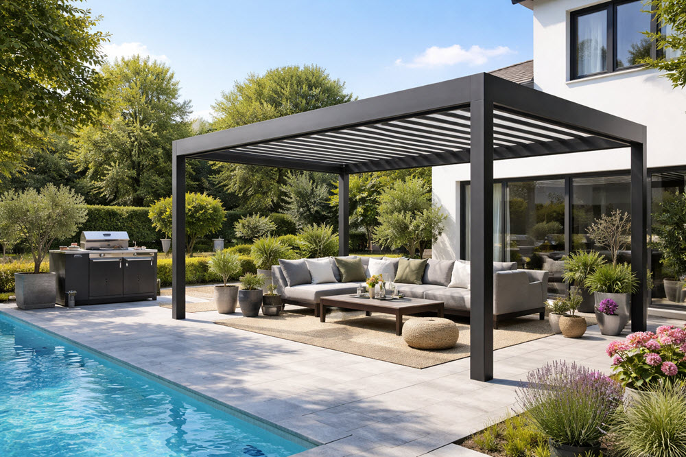 Zahradní bioklimatická pergola je tak ideální volbou pro každého, kdo hledá komfortní a estetické zastřešení venkovních prostor.