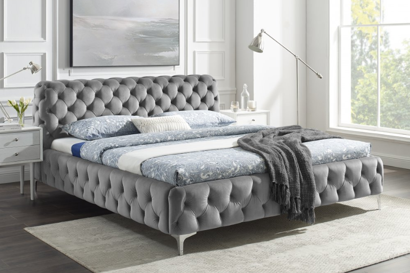 Ložnice – Postele s čalouněným čelem, elegantní noční stolky a praktické komody.