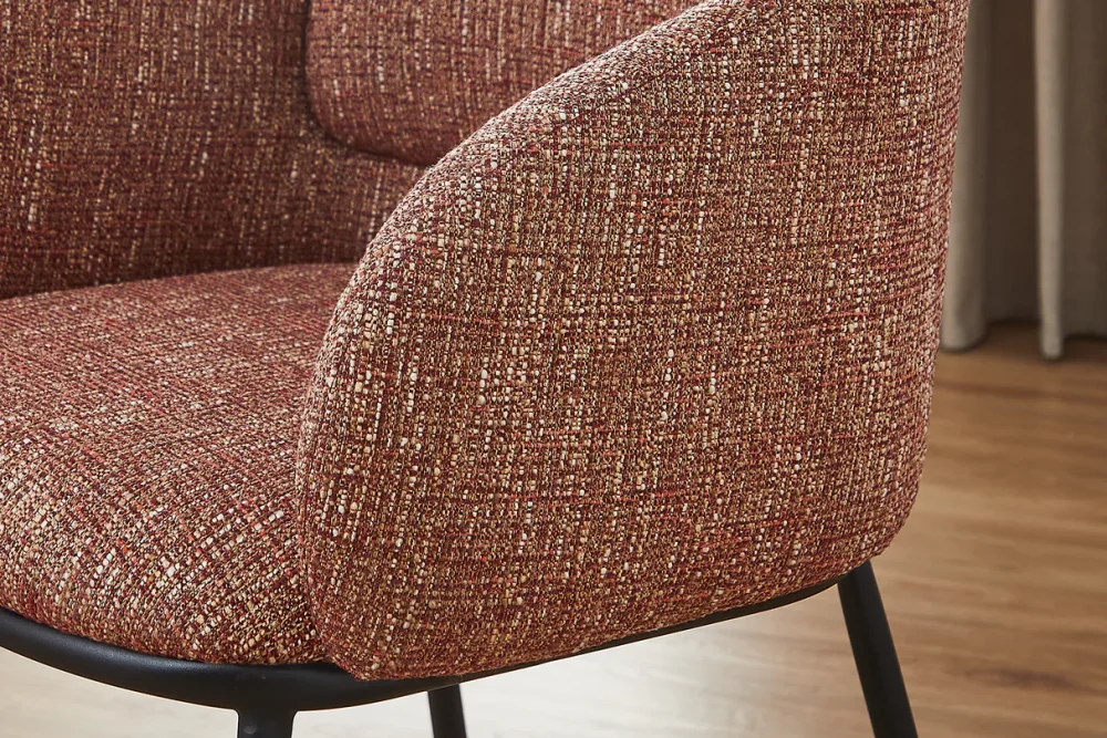 Křeslo FLORENTINE přináší do vašeho domova elegantní vzhled a vysoký komfort. Díky měkké texturované tkanině působí útulně a zároveň moderně, takže se hodí jak do jídelny, tak do obývacího pokoje či pracovny. Jemně zaoblený tvar sedáku s integrovanými područkami vytváří příjemné obejmutí a poskytuje pohodlí při každodenním sezení.