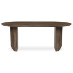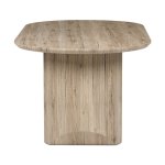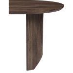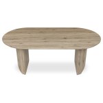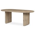 Oválná deska je vyrobená z MDF materiálu a díky tomu je odolná a snadno udržovatelná, což z něj činí ideální volbu pro rodinné večeře i slavnostní příležitosti. Matná povrchová úprava a detailně propracované nohy dodávají stolu stylový vzhled. K dispozici jsou dvě varianty dřeva: