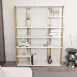 Kombinace bílé a zlaté barvy dodává této knihovně nadčasovou eleganci, která bez problémů doplní jakýkoli styl interiéru. Kontrastní odstíny vytvářejí vizuálně působivý efekt, díky němuž se stane ústředním bodem každé místnosti. Ať už ji umístíte do obývacího pokoje, ložnice nebo pracovny, tato knihovna dodá vašemu prostoru nádech sofistikovanosti.