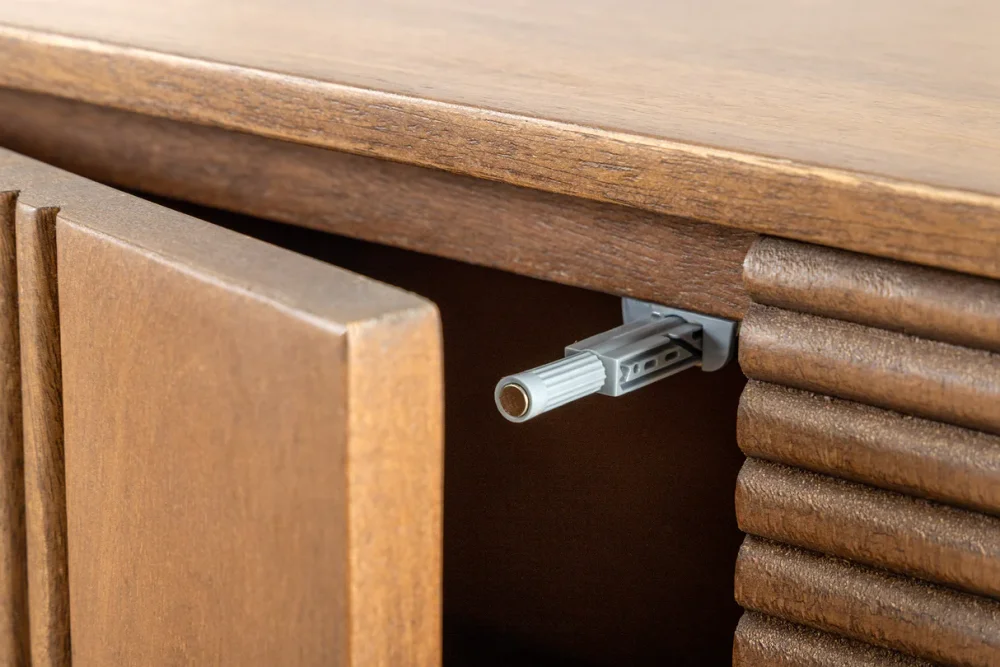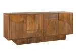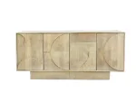 Komoda nabízí šest přihrádek se skříňkami a nastavitelnými policemi, díky nimž snadno přizpůsobíte úložný prostor svým potřebám. Čtyři dvířka se otevírají pomocí moderní funkce push-to-open, která zajišťuje pohodlné a tiché používání. Robustní konstrukce z mangového dřeva zaručuje dlouhou životnost a vysokou odolnost, zatímco jedinečný design dodává komodě výrazný charakter.