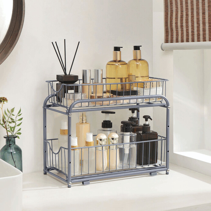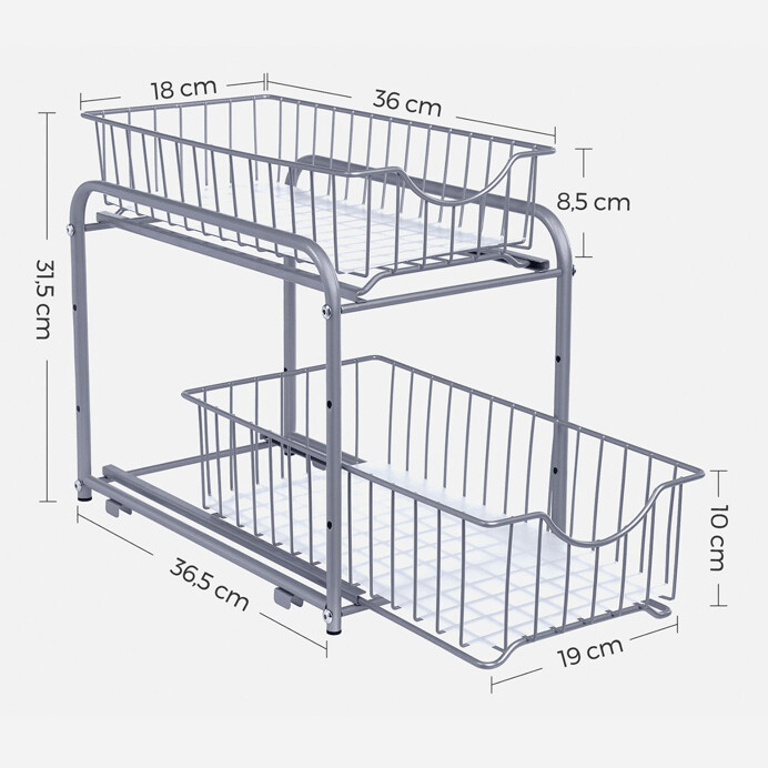 Stříbrný organizér AUK-E1017 s dvěma výsuvnými kovovými zásuvkami nabízí praktické řešení pro ukládání drobných předmětů v domácnosti či kanceláři. Jednoduchý design v neutrální stříbrné barvě se hodí do různých interiérů a usnadňuje organizaci každodenních potřeb.