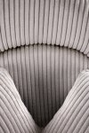 Křeslo je celočalouněno hebkou plyšovou látkou v několika barevných variantách. Díky neutrálním barvám je vhodné do jakéhokoliv interiéru. Výrazné svislé prošívání křeslu dodává výrazný a unikátní design.