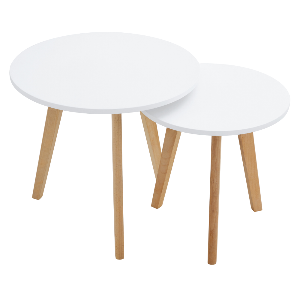 Díky kombinaci většího a menšího stolku získáte flexibilní řešení pro odkládání knih, nápojů, dekorací i drobností každodenní potřeby. Stolky lze používat samostatně nebo zasunout pod sebe a šetřit tak místo. Skvěle se hodí do skandinávsky laděných interiérů i moderních domácností.