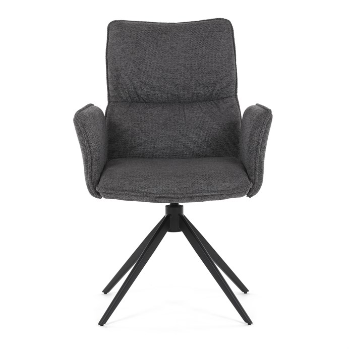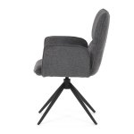 Integrované čalouněné područky přispívají k ergonomii a pohodlí, umožňují uvolněnou pozici rukou během stolování. Sedák i opěradlo jsou anatomicky tvarované a vyplněné měkkou pěnou, která zvyšuje komfort a podporuje správné držení těla. Díky pevné kovové konstrukci nohou je židle vhodná pro každodenní použití v domácnostech i komerčních prostorách.