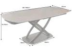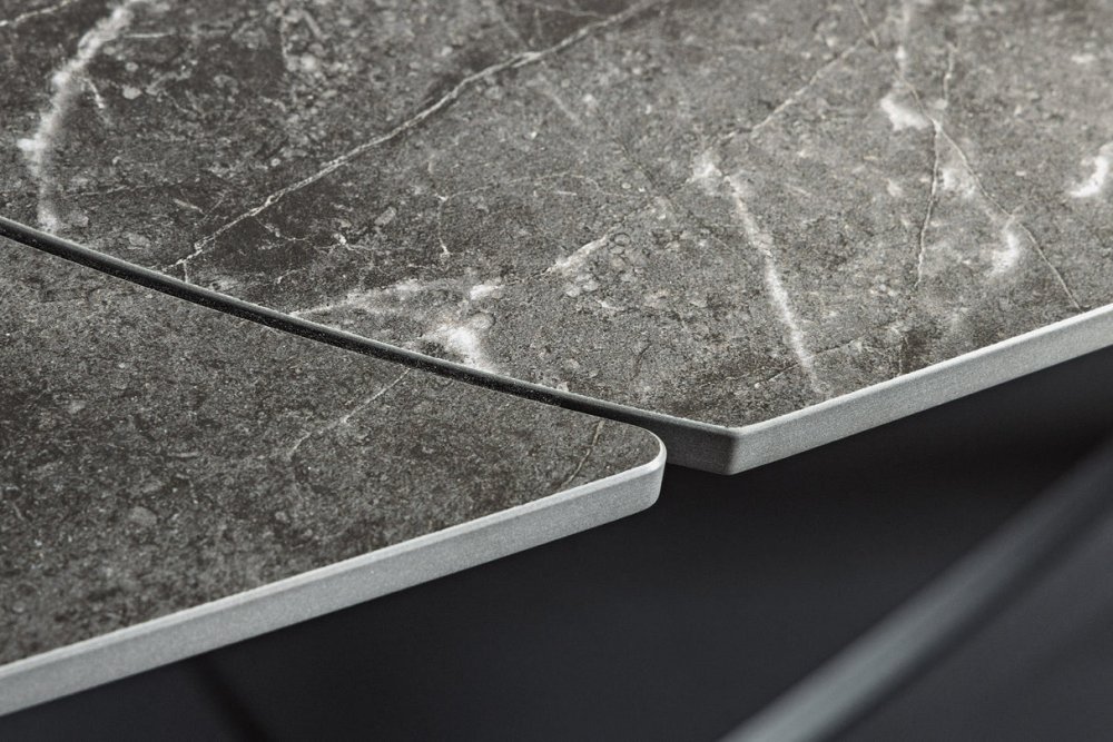 Deska stolu je vyrobena z kvalitní keramiky nanesené na bezpečnostní sklo, což zajišťuje odolnost proti poškrábání a vysokou odolnost vůči teplu. Zvláštností je integrovaný vysouvací mechanismus, který umožňuje stůl prodloužit až o 60 cm. Díky tomu je snadné přizpůsobit stůl počtu hostů, aniž byste se vzdali jeho elegantního vzhledu.