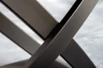 Podnoží stolu je vyrobeno z práškově lakovaného kovu, který kombinuje pevnost a stabilitu s lehkostí díky otevřenému designu a zkříženým vzpěrám. Tento industriální styl se skvěle hodí k různým typům židlí, svítidel či příborníků a umožňuje vytvořit harmonický a stylový interiér.