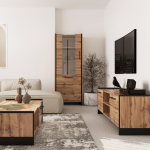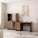 Sektorový systém AMONI v kombinaci dub wotan s černou představuje moderní a praktické řešení pro váš interiér. Spojení přírodního dekoru s černou barvou přináší do každé místnosti nádech stylu a elegance. Ať už potřebujete zařídit dětský pokoj, ložnici, obývací pokoj nebo předsíň, tento univerzální nábytek se postará o estetické i funkční potřeby vašeho interiéru. Komponenty se objednávají jednotlivě, díky čemuž si můžete vytvořit sestavu podle vašich představ.
