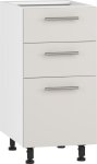Spodní skřínka D3S-40/82 nabízí dostatek úložného prostoru v podobě tří šuplíků, které disponují systémem tichého dovírání. Stojí na čtyřech nožičkách s regulovatelnou výškou.