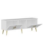 Transformujte svůj obývací pokoj s naším elegantním a moderním televizním stolkem. Vyrobený ze 100% melaminem potažené dřevotřísky, je tento stolek nejen odolný, ale také stylový. Čistá bílá barva prozáří jakýkoli prostor a vytvoří svěží a přívětivou atmosféru pro vás a vaše hosty.
