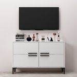Se svými čistými liniemi a minimalistickým designem tento televizní stolek okamžitě pozvedne vzhled vašeho obývacího pokoje. Bílá barva dodává jakémukoli prostoru nádech elegance a sofistikovanosti, zatímco 18 mm silná melaminem potažená dřevotříska zajišťuje odolnost a dlouhou životnost. PVC nohy poskytují stabilitu a podporu, což z něj činí ideální volbu pro vaši televizi.