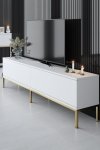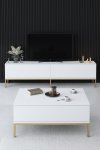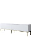 Ponořte se do čisté krásy našeho tv stolku, pečlivě vyrobeného ze 100% melaminem potažené dřevotřískové desky. Jeho elegantní a moderní design v kombinaci s nádhernou kombinací bílé a zlaté barvy bez námahy pozvedne estetiku každé místnosti.