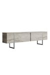 Zvyšte svůj obývací pokoj s naším ohromujícím televizním stojanem, vytvořeným 100% melaminovou deskou částice pro trvanlivost a styl. Elegantní kovové nohy přidávají moderní dotek, zatímco kombinace Traverten a Silver Combinace přináší do jakéhokoli prostoru nádech elegance.