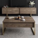 Díky elegantním kovovým nohám vyzařuje tento televizní stolek nádech glamouru, který bez námahy pozvedne výzdobu vašeho interiéru. Kombinace ořechové a zlaté barvy dodá každému prostoru luxusní a opulentní dojem a vytvoří podmanivý ústřední bod, který jistě upoutá pozornost.