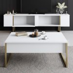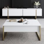 Kovové nohy dodávají tomuto již tak nádhernému televiznímu stolku nádech elegance a rafinovanosti. Elegantní zlatá povrchová úprava dokonale doplňuje bílou barvu a vytváří úžasný vizuální kontrast, který okamžitě upoutá pozornost každého, kdo vstoupí do vašeho obývacího prostoru.