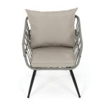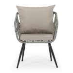 Součástí jsou voděodolné šedé polstry ze 100% polyesteru, které zajišťují komfort při sezení. Tloušťka pěny opěráku 25 cm a sedáku 6 cm poskytuje dostatečnou oporu. Ergonomické rozměry křesel i pohovky jsou přizpůsobeny běžnému venkovnímu posezení. Nosnost odpovídá standardním požadavkům zahradního nábytku.