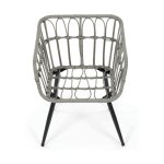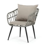 Lehce otevřená konstrukce opěradel a područek podporuje moderní a vzdušný vzhled. Čtyřnohá podnož zajišťuje stabilitu při běžném zatížení. Kulatý stolek o výšce 45 cm je praktickým doplňkem pro odložení nápojů nebo drobností.