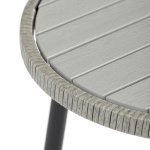 Konstrukce je vyrobena z kovu s práškovým lakem, který zvyšuje odolnost vůči povětrnostním vlivům. Výplet z polyratanu je pevný, tvarově stálý a vhodný pro venkovní prostředí. Polywoodová deska stolku napodobuje vzhled dřeva, ale je snadno udržovatelná a praktická při každodenním používání.